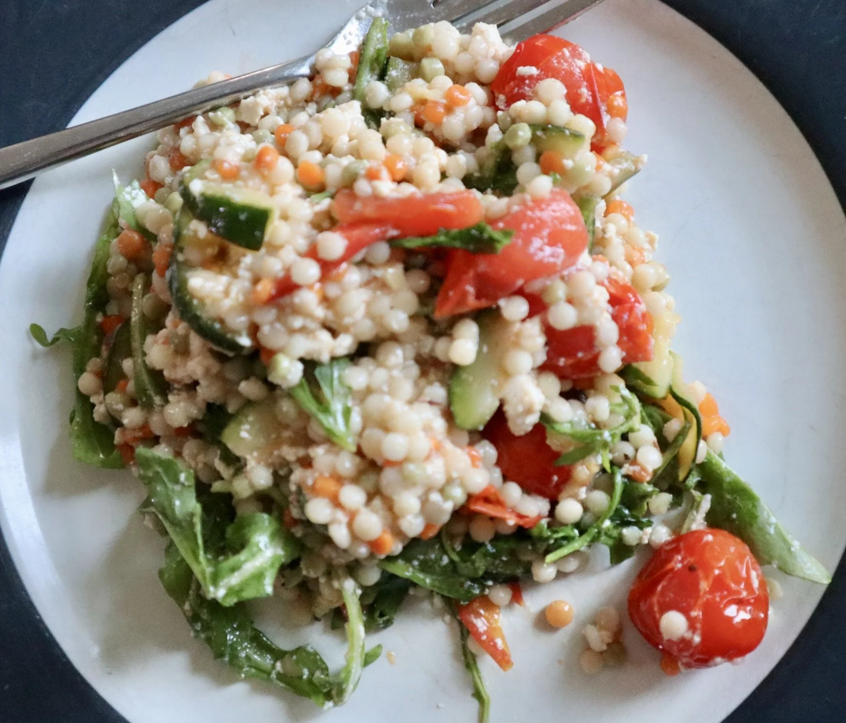 Pearl Cous Cous Salad with Cherry Tomatoes and Zucchini