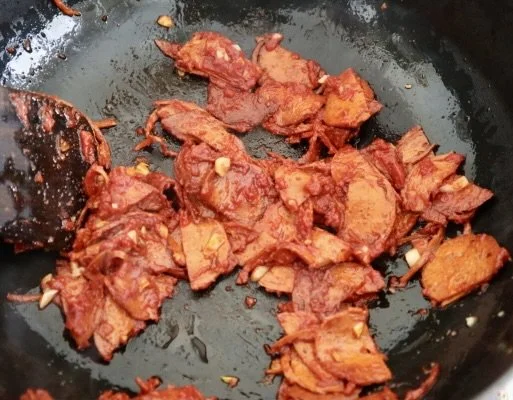 Add the garlic and red pepper flakes. Stir and cook for a minute, or until fragrant. Add the tomato paste and salt. Mix well and cook for another minute.