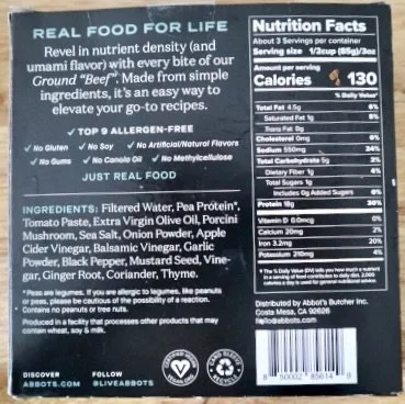 1 package (10 oz.) Abbott’s ‘plant-rich ground “beef”’ , or another ground beef alternative of your choosing
